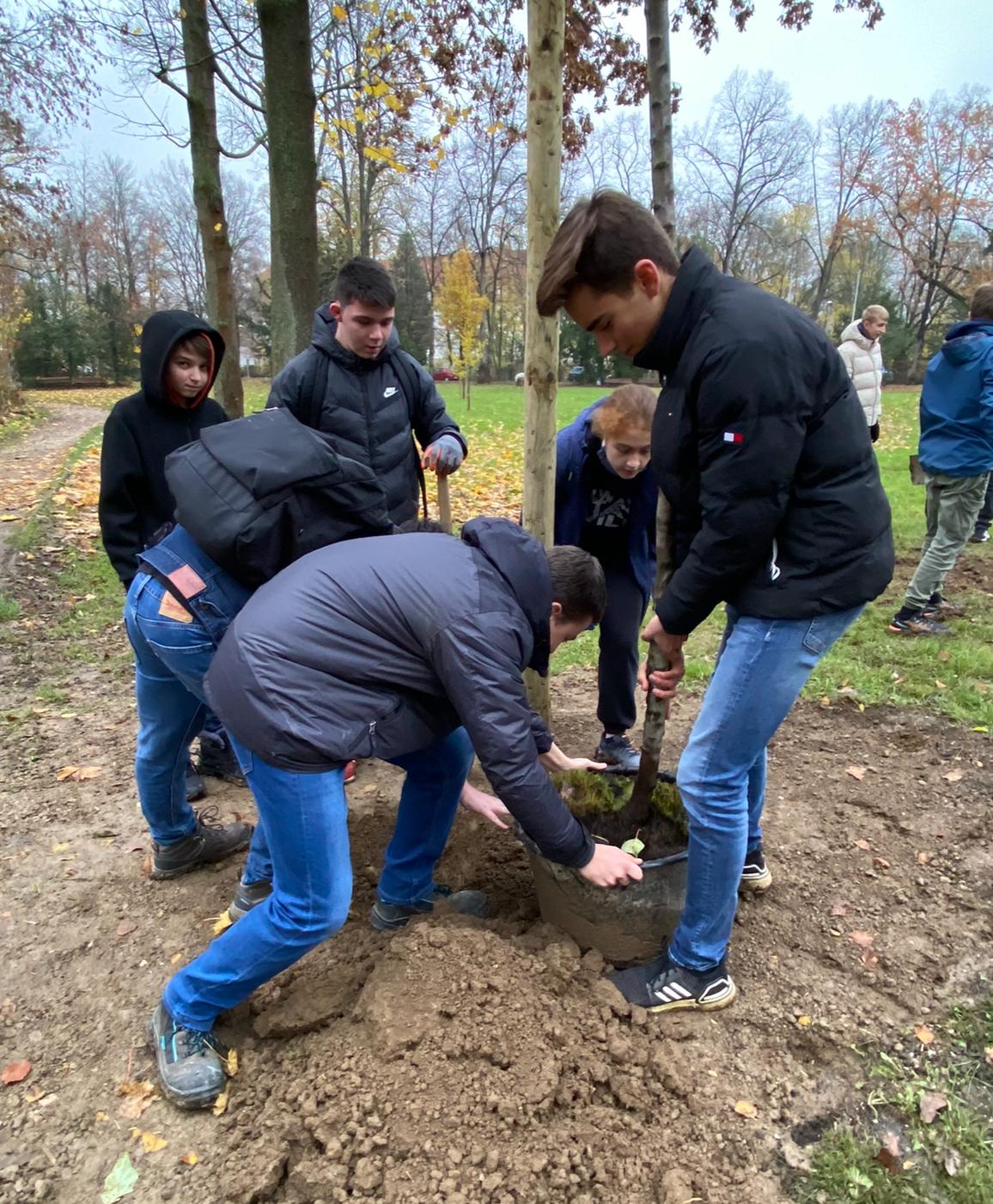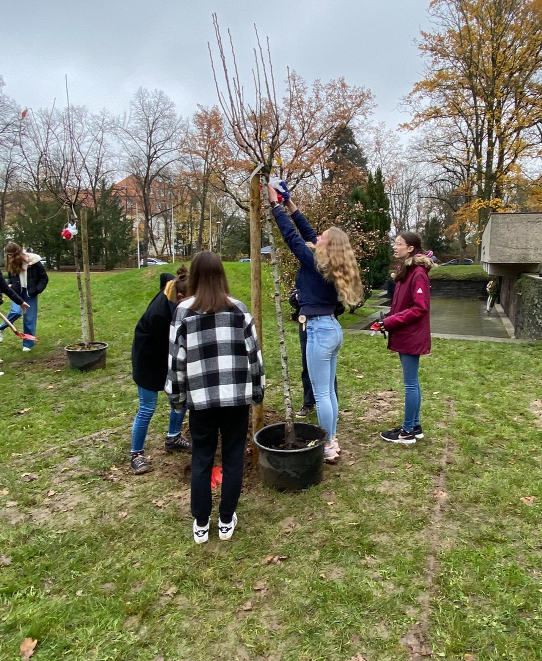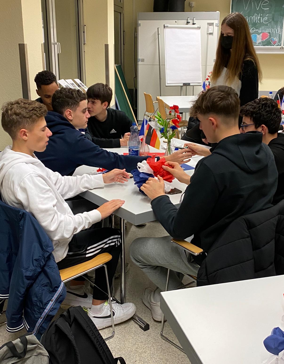 Schülerbegegnung mit der Groupe Scolaire Sainte Anne aus Verdun trägt Früchte. Ende November 2022 nahmen zahlreiche Schülerinnen und Schüler des SGR aus mehreren Französischkursen an einer Schülerbegegnung mit französischen Jugendlichen aus Verdun teil. Liebevoll und aufmerksam hatten die deutschen Jugendlichen die aus Frankreich anreisende Gruppe mit heißem Kakao und Plätzchen in einem gemütlich dekorierten Klassenzimmer empfangen. Hier war erst einmal Zeit für die erste Vorstellungsrunde und die Möglichkeit sich zu beschnuppern. Im Anschluss war von unseren Schülern der Oberstufe eine Stadtführung auf Französisch vorbereitet worden, bei der die Gäste unsere weihnachtlich beleuchtete Innenstadt bestaunen konnten. Dabei bekamen sie Hintergründe über den Hexenturm, die Flut des letzten Jahres, den Römerkanal und die Stadtmauer, das Kriegsdenkmal und die Stolpersteine erklärt. Die Augen der Jugendlichen der Groupe Scolaire Sainte Anne leuchteten vor Stolz, als sie in der Innenstadt den zuvor eigens für sie geschmückten Weihnachtsbaum der Partnerschaft des Friedens Rheinbach/Douaumont-Vaux entdeckt hatten. Zurück in der Schule bastelten die Schülerinnen und Schüler noch Dekoration für die Bäume des Friedens, die sie am nachfolgenden Tag im Stadtpark pflanzen würden. Auf kleine Holzscheiben gravierten sie ihr Vornamen und bastelten aus Servietten Pompons in den französischen Nationalfarben. Am Folgetag trafen sich die ca. 60 Jugendlichen im Stadtpark vor dem Kriegsdenkmal, wo sie bereits von Rheinbachs Bürgermeister Ludger Banken, dem Vorsitzenden der Partnerschaft des Friedens, Stefan Raetz, dem Bürgermeister von Douaumont-Vaux, Armand Falque, und dem Direktor des Beinhauses, Olivier Gérard, empfangen wurden. In kurzen Reden betonten diese alle gleichermaßen die Bedeutung der deutsch-französischen Freundschaft für den europäischen Frieden und die Tatsache, dass die jungen Generationen beider Länder zukünftig angesichts des Ukrainekriegs und der Klimakrise Hand in Hand an ihrer Zukunft arbeiten müssten. Im Anschluss wurden etwa 20 Obstbäume gepflanzt, die in einer kleinen Friedensallee erblühen mögen. Bei heißer Suppe und Kakao nach der getanen Arbeit tauschten einige der Jugendlichen noch ihre Kontaktdaten aus und verabredeten sich zu einem weiteren baldigen Austausch, vielleicht sogar für drei Monate mit dem Brigitte-Sauzay-Programm. Die Lehrkräfte freuten sich sehr über diese Begegnung, die verbunden mit einer hohem Symbolkraft genau das erreicht hatte, was bezweckt worden war: Völkerverständigung, Frieden und Freundschaft.